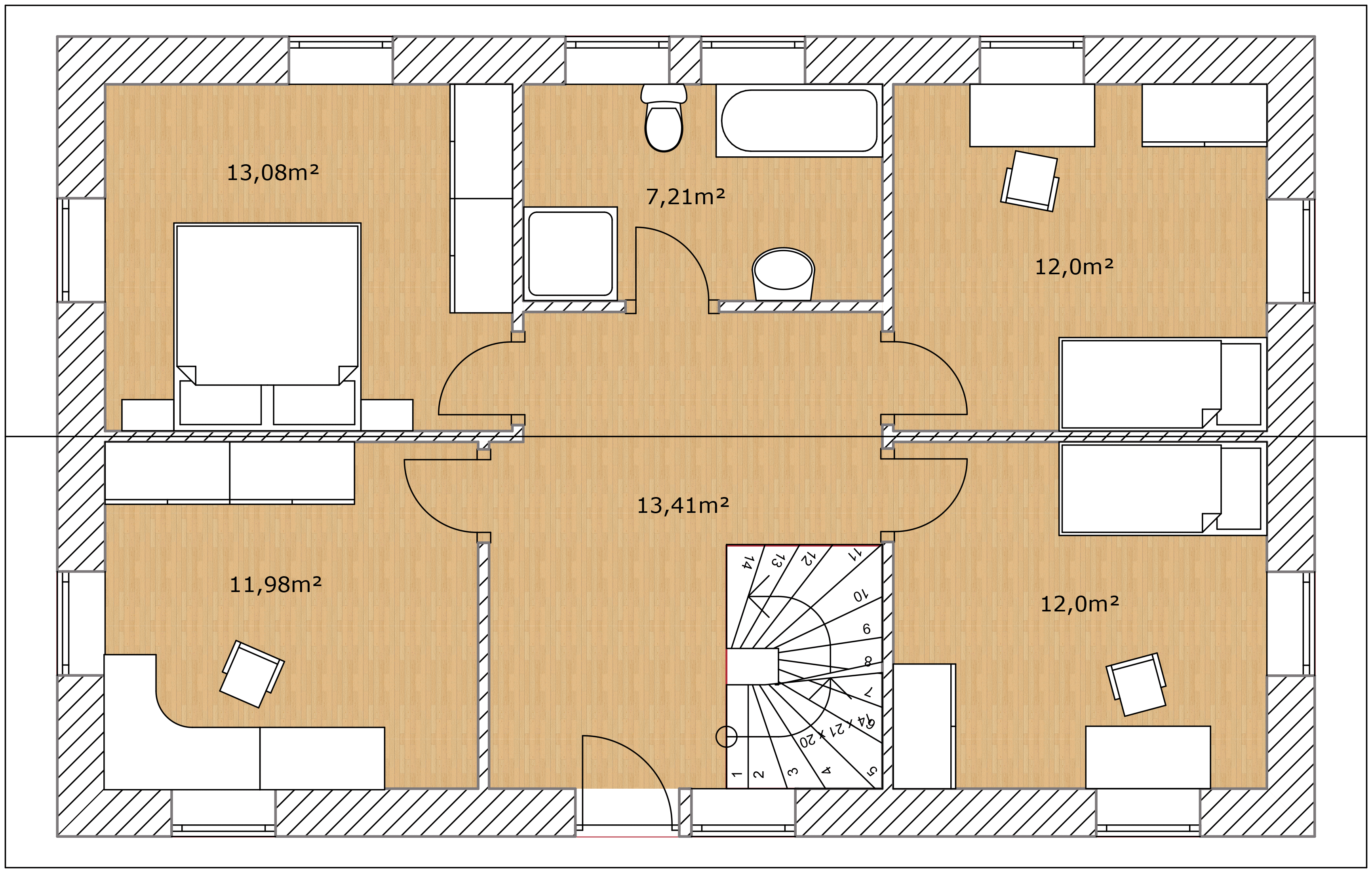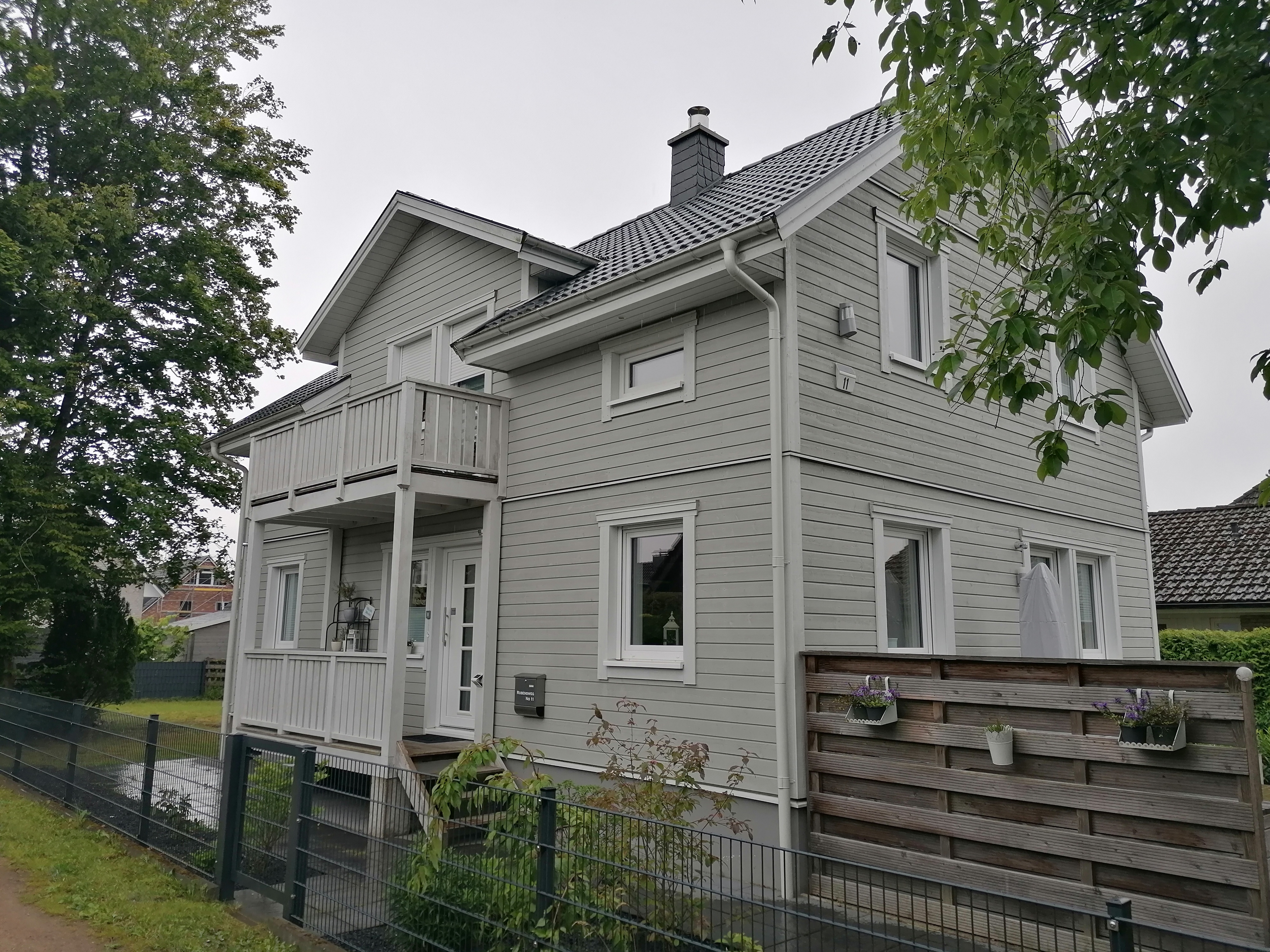 Dieses schwedische Landhaus besticht durch seine symmetrischen Proportionen. Der vorgesetzte Eingang mit Balkon verleiht dem Haus eine besondere Note. Viele Fenster bringen Tageslicht ins Haus. Der gut durchdachte Grundriss gibt genügend Platz für eine vierköpfige Familie. Der offene Grundriss im Erdgeschoss sorgt für ein großes Raumgefühl, welches oft nur in viel größeren Häusern vorhanden ist. Das Modell Nordkap 150 hat zusätzlich ein Gästebad und mit dem Schlafzimmer im Erdgeschoss wird später ein Wohnen auf einer Ebene ermöglicht. Dann haben die Kinder das Obergeschoss für sich.